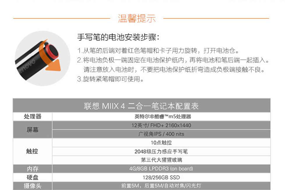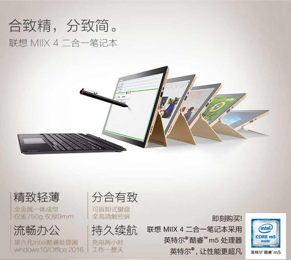 呈贡联想二合一笔记本 MIIX 4 12“